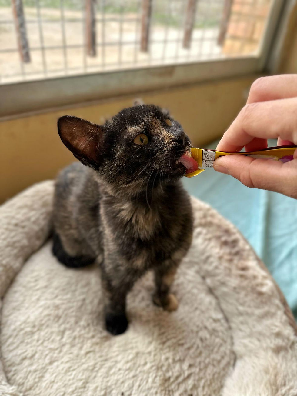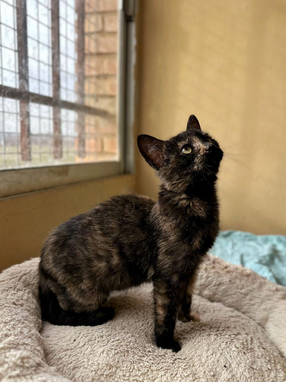 C'est une gentil et douce petite minette qui aime jouer et recevoir des câlins mais est plutôt d'un naturel calme pour son âge.